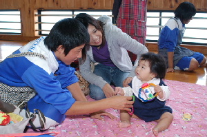 中学生と赤ちゃん&パパ・ママのふれあい