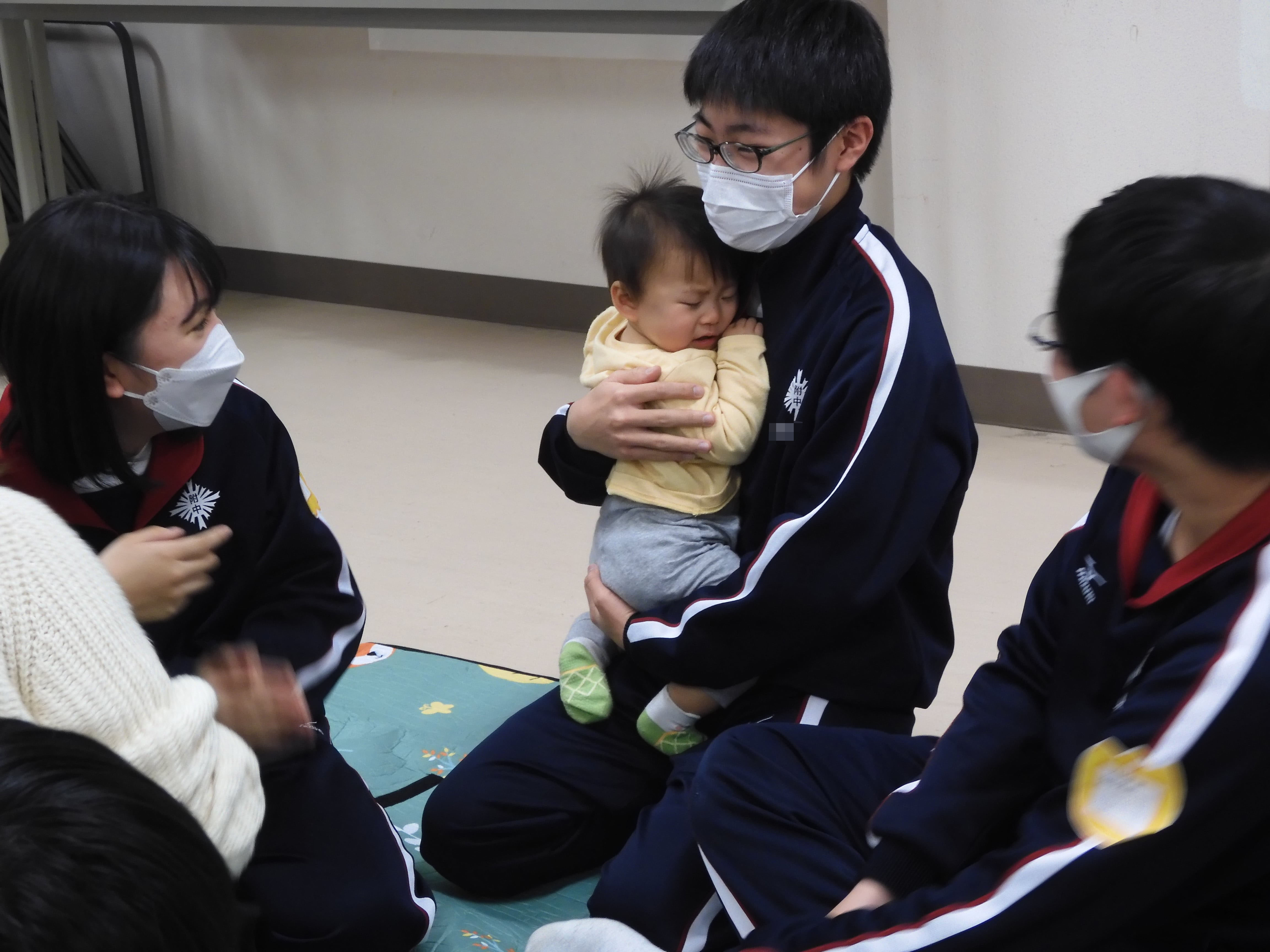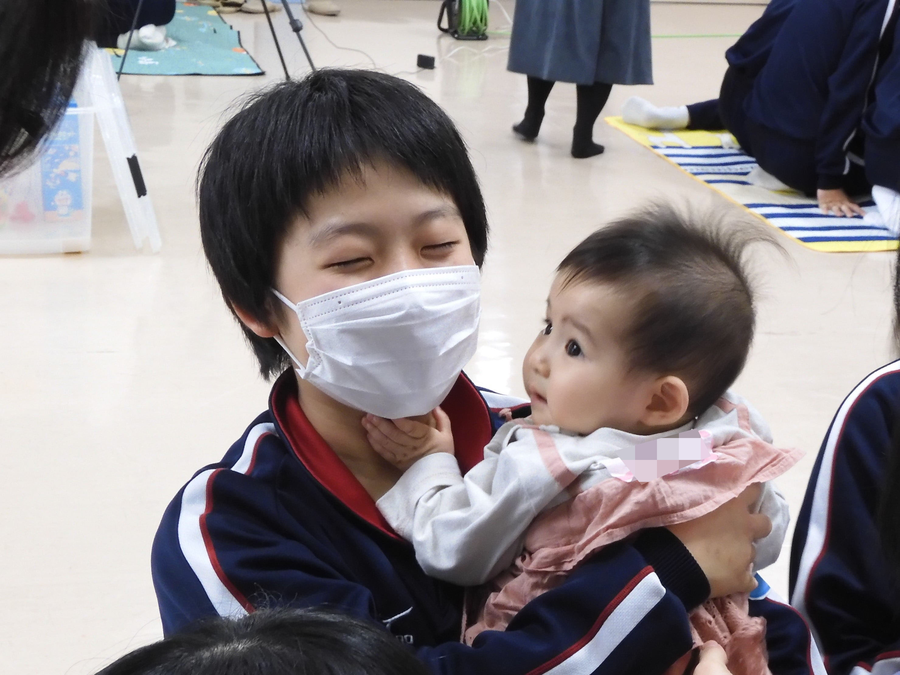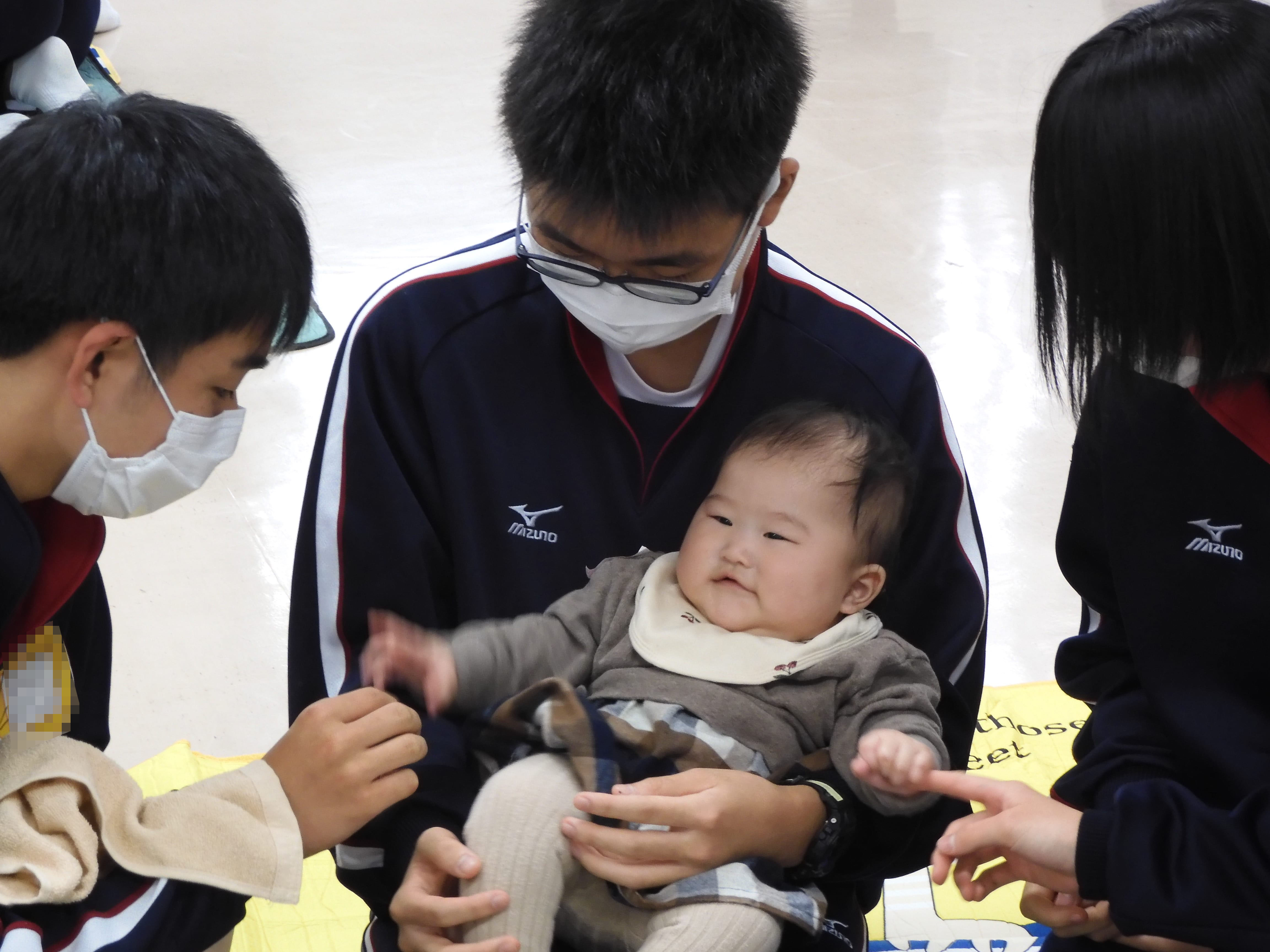 一番感じたことは、赤ちゃんってすごい。ということでした。まず、自分は○○ちゃんから目が離せませんでした。自分の方を見てくれて、目があったらもうずっと目が離せませんでした。この授業が1時間もあったのに、体感は5分もありませんでした。○○ちゃんのことについて聞いている時間やふれあっている時間は、本当に楽しくて、一瞬で過ぎ去りました。