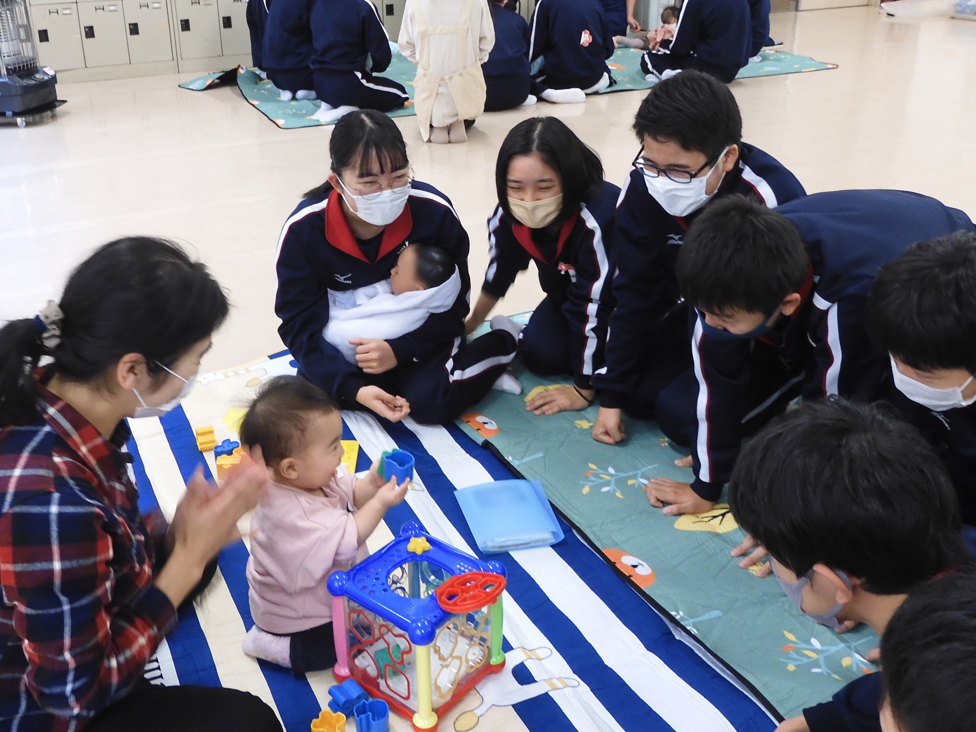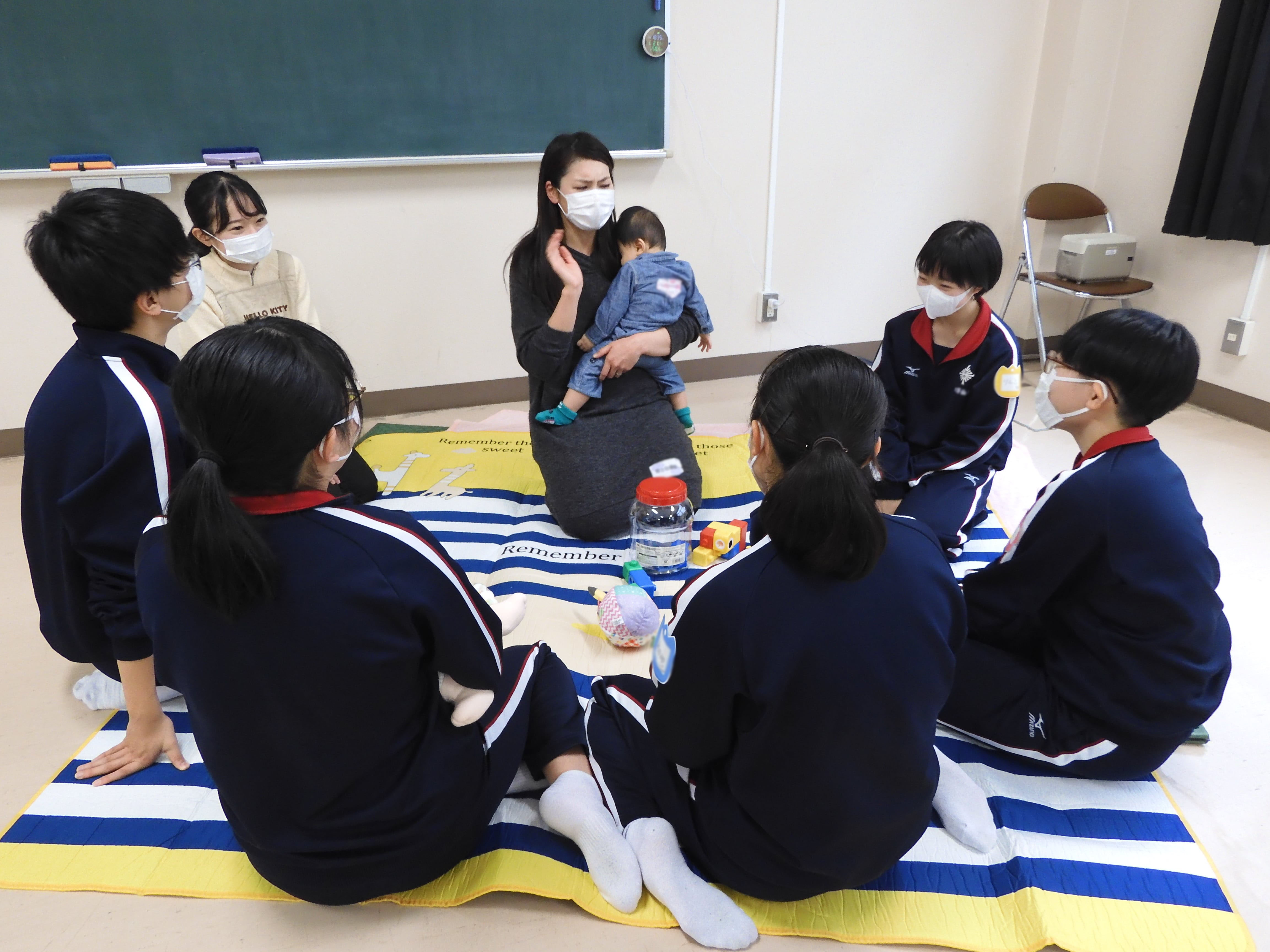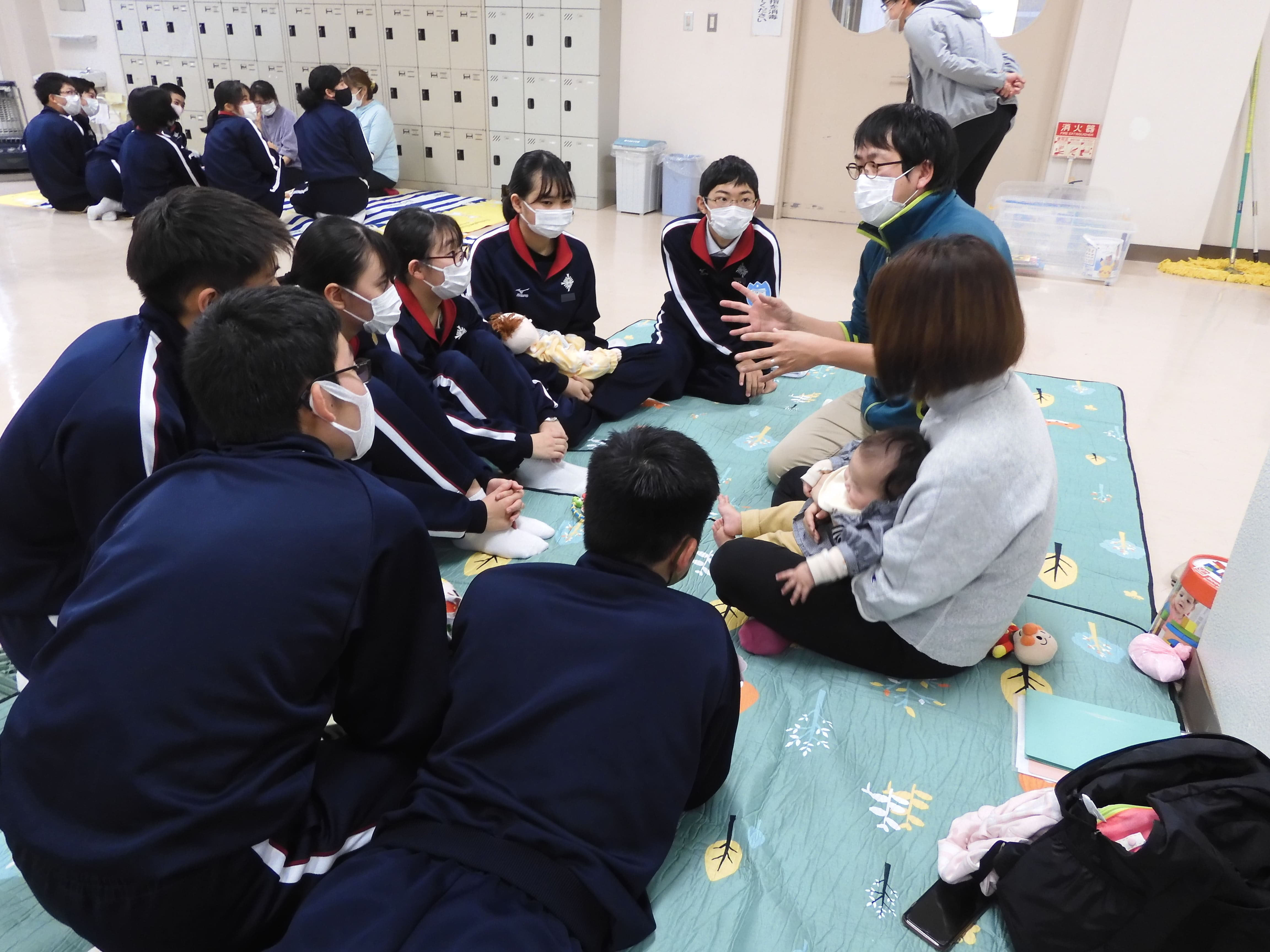 コロナ禍でのふれあい体験。「赤ちゃん親子さんの協力がいただけるのかしら?」「学校での実施はできるのかしら?」などなどの心配をしつつ、秋の実施に向け、春先から準備を進めて参りました。幸いなことに、11月の附属中でのふれあい体験に合わせるかのようにコロナの感染は終息の方向に向かってくれました。